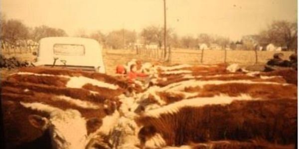 These are pictures of my late Grandpa Harold Watson's hereford calves. Herefords have always been in our blood. On the truck is my grandpa, my mom, and my aunt.
